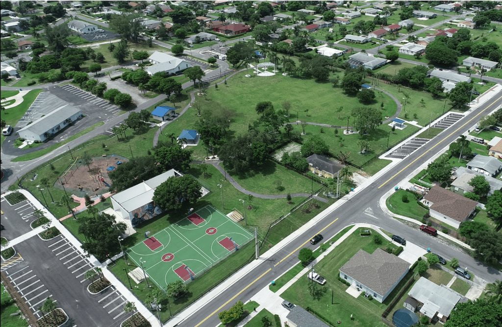 B: Just south of the Model Block Project, Sara Sims Park, located at 209 N.W. 9th Court, went through an incredible $1.5 million dollar renovation bringing new life to the open space. The BBCRA contributed $750,000 towards the project which was completed in September 2019. As a result of the renovations, the following amenities were added: 3 small pavilions, one large pavilion, an amphitheater, new restroom, new walkways/fitness path, cell phone charging station, security cameras, decorative fencing, lighting, benches, new parking and new landscaping and irrigation throughout.