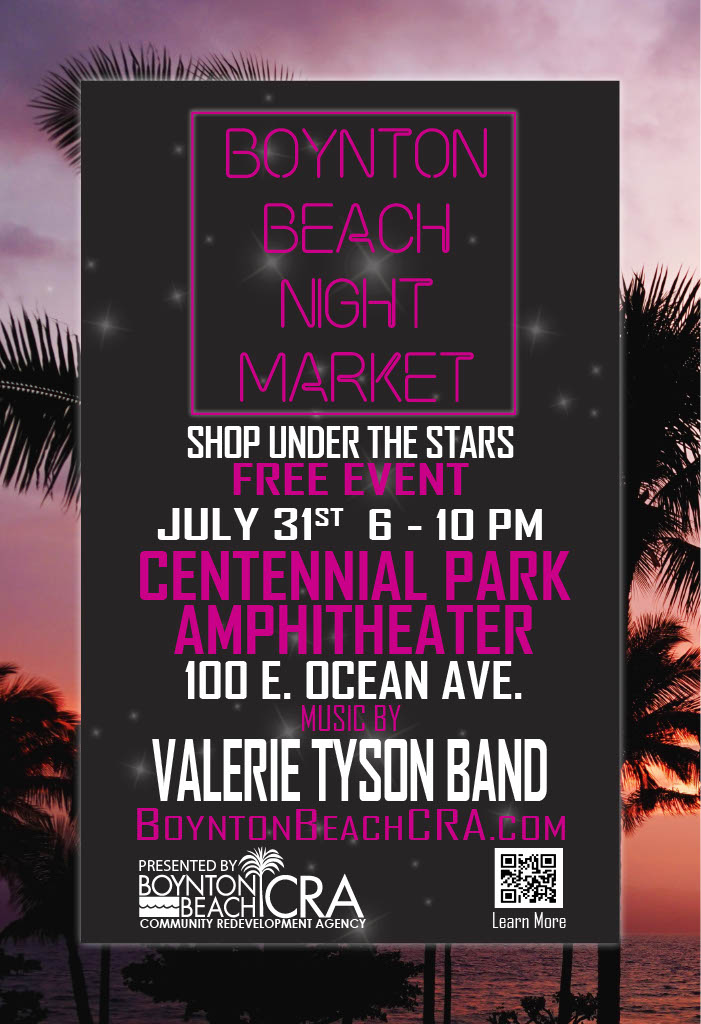 Visit our Facebook event page for additional details. Be sure to like and follow @BoyntonBeachCRA on Facebook and Instagram to receive the latest updates about the event and use #BBNightMarket when posting to your favorite socials.