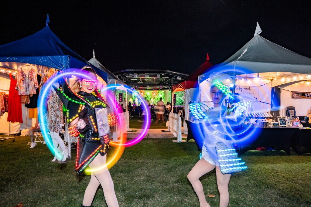 During the Night Market, the businesses outlined above will be featured within colorful tents and will have special neon signage. Each of these vendors will offer complimentary glow and light-up novelty items to attendees who visit their booths. Visit each business to “glow up” and help us light up the night!