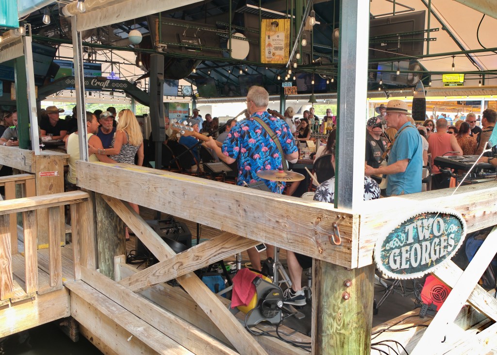 A local landmark for over 60 years, Two Georges offers seafood favorites, casual vibes, and stunning views under its iconic thatched roof. Stop in for their famous Maryland crab cakes or enjoy live music on the dock.