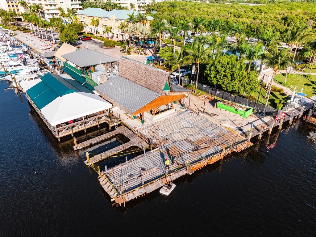 This remodel wasn’t just for cosmetic purposes. In Florida’s coastal environment, maintaining a sturdy seawall is critical for protecting the local ecosystem and the structural integrity of the marina. The upgraded docks mean more reliable space for boaters to pull up, tie off, and step right into the lively atmosphere under the iconic thatch roof.